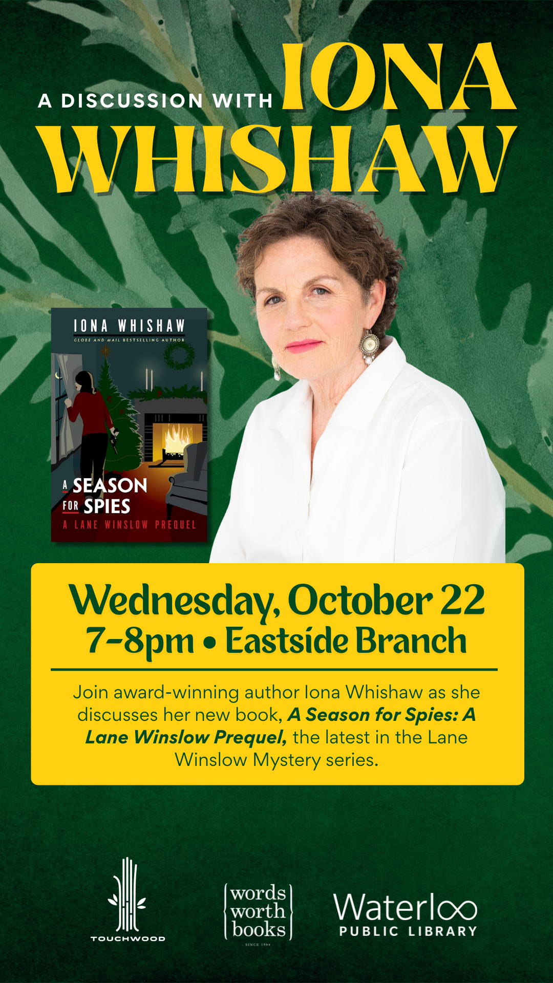 Words Worth is happy to partner with our friends at the WPL in welcoming award-winning author Iona Whishaw as she discusses her new book A Season for Spies: A Lane Winslow Prequel, the latest in the Lane Winslow Mystery series.